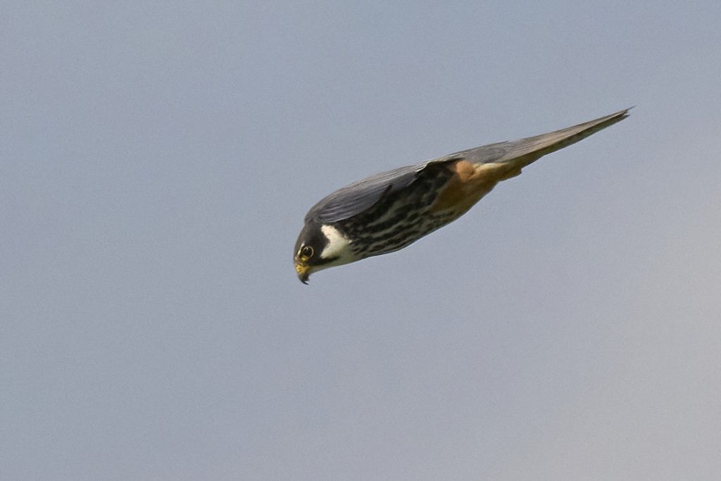 Attente de quoi, me demandez-vous. Mais du faucon hobereau, pardieu ! Cette fois-ci, Christine le voit arriver de loin. Il fait le tour de l’observatoire et, malgré la rapidité de son vol, nous parvenons à le cadrer trois ou quatre fois. Un petit nouveau qui a droit à un chapitre à part.